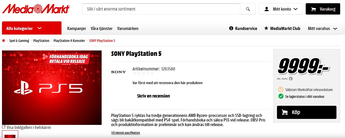 "Informasi seputar PS5 bersifat sementara dan bisa berubah saat rilis," tulis MediaMarket dalam deskripsinya.